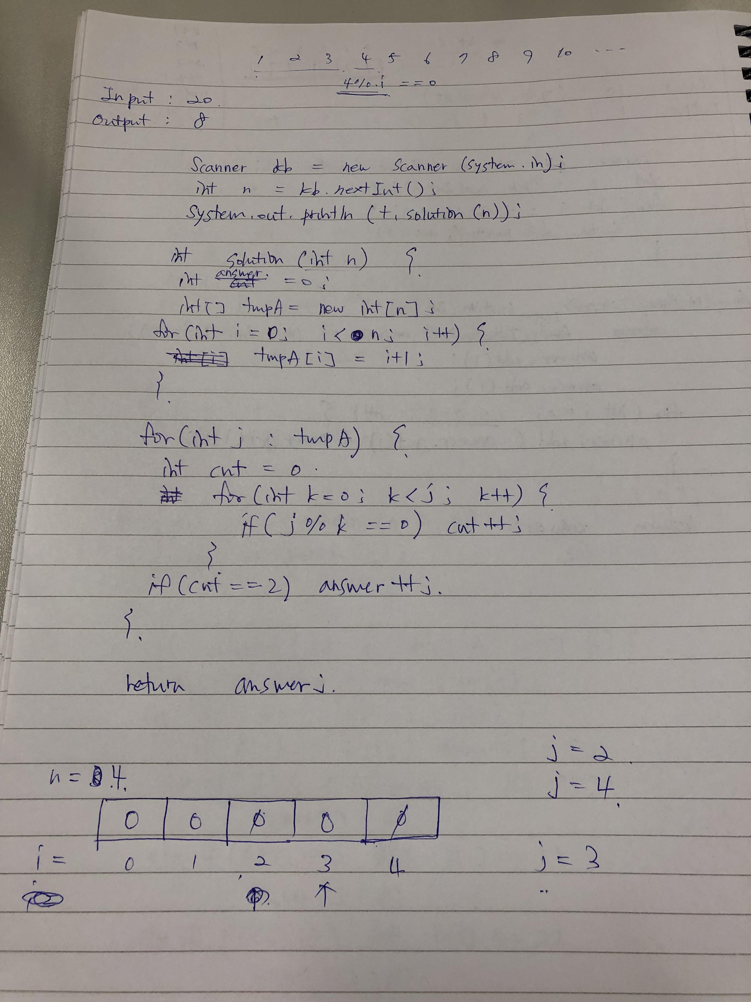 - If the count is 2 (only divisible by 1 and itself), the answer variable is incremented.